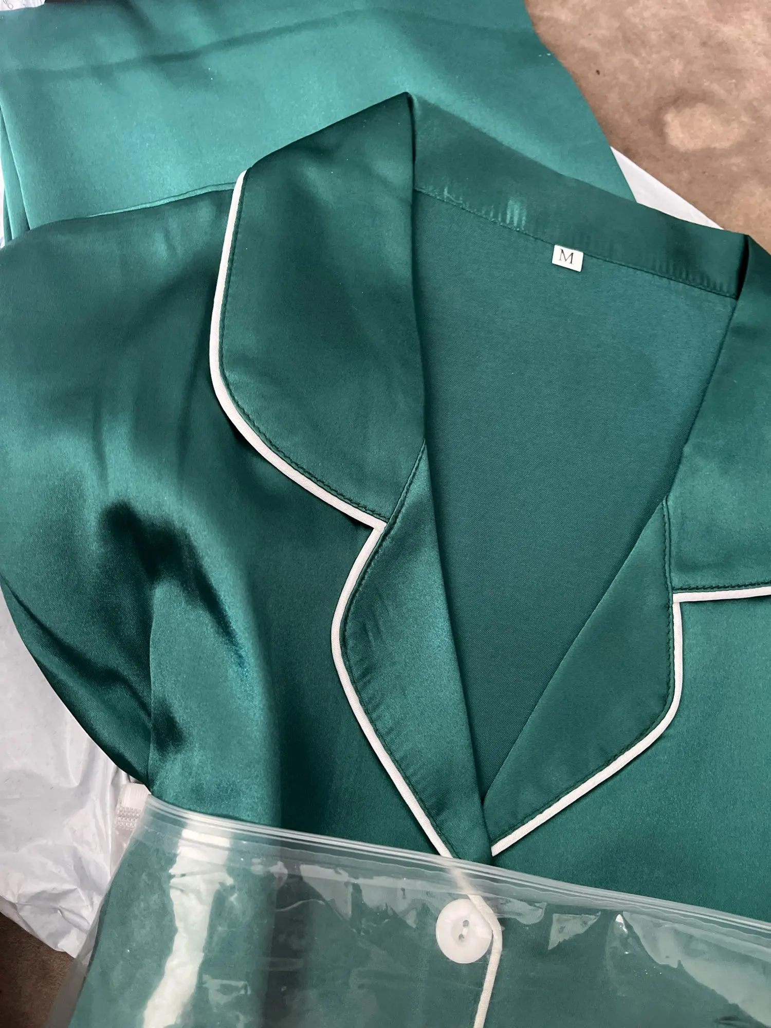 The long-sleeve button-up top features a refined lapel collar and tailored silhouette, while the ankle-length trousers offer an elegant fluidity and a flattering fit. Whether unwinding at home or embracing elevated loungewear for special evenings in, this set transforms relaxation into a stylish ritual.